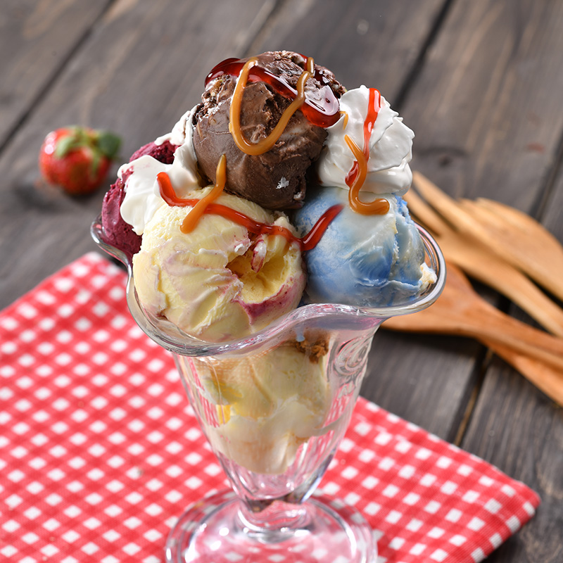 Tercih ettiğiniz 4 top dondurma ile servis edilir