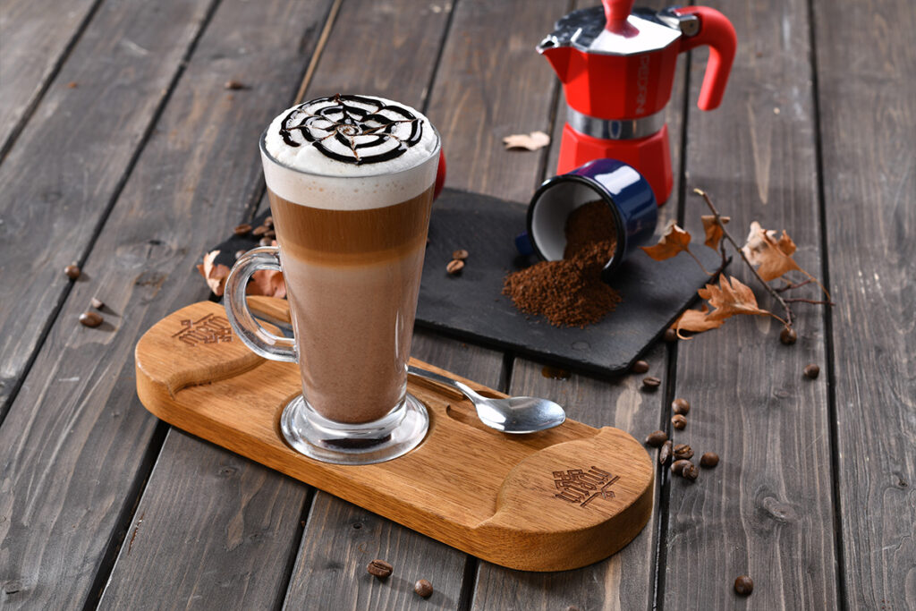 Espresso, süt, karamelin krema ile enfes sunumu